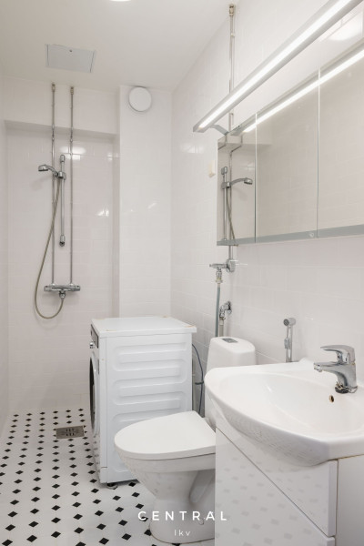 | Kylpyhuoneen varustetaso | WC-istuin, suihku, pesukoneliitäntä, peilikaappi, pesuallas, allaskaappi ja bidee-suihku |
