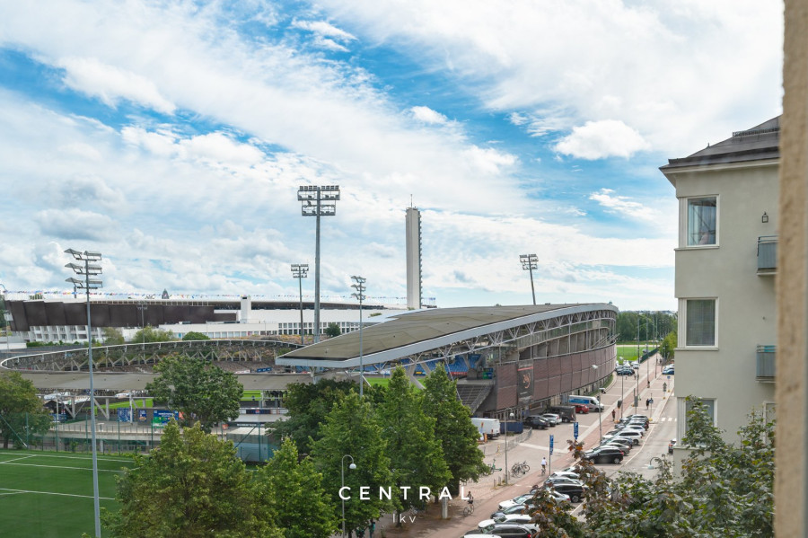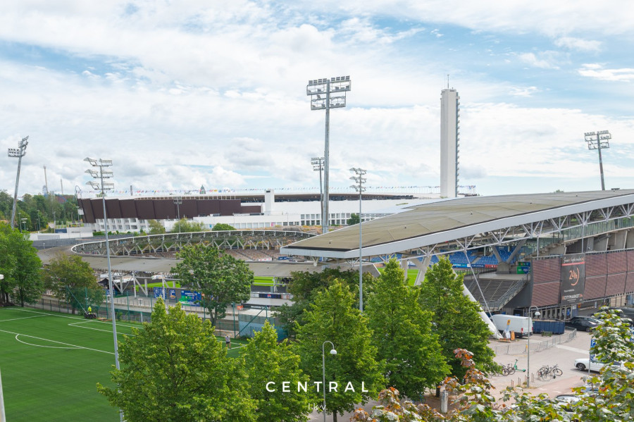 Töölössä, Nordenskiöldinkadulla, sijaitsee valoisa ja tilava huoneisto, joka tarjoaa upeat näkymät Olympiastadionille ja Urheilukadulle.