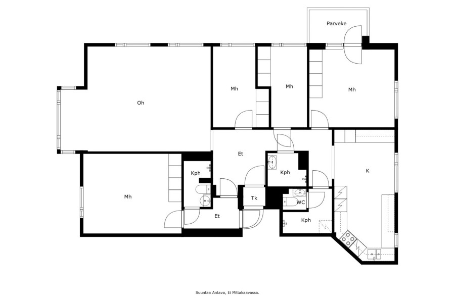 Huoneistossa on kolme makuuhuonetta, joista päämakuuhuoneen yhteydessä on parveke, jolta avautuvat avarat näkymät. Erillinen yksiö mahdollistaa joustavan tilankäytön, ja sitä voi hyödyntää esimerkiksi työtilana tai ylimääräisenä makuuhuoneena tai erillisenä huoneistona.