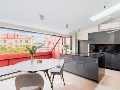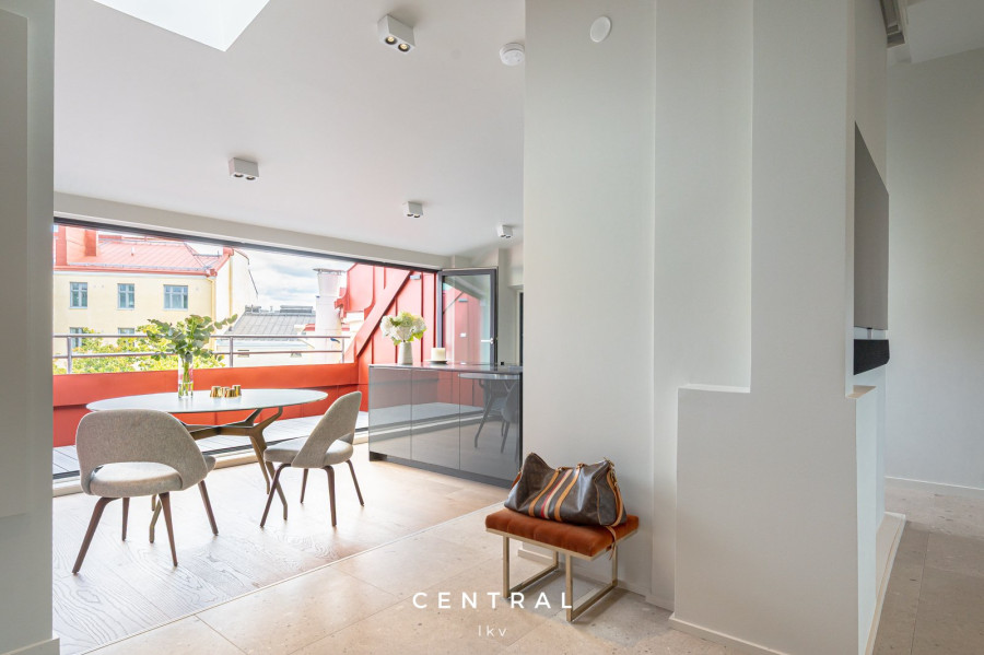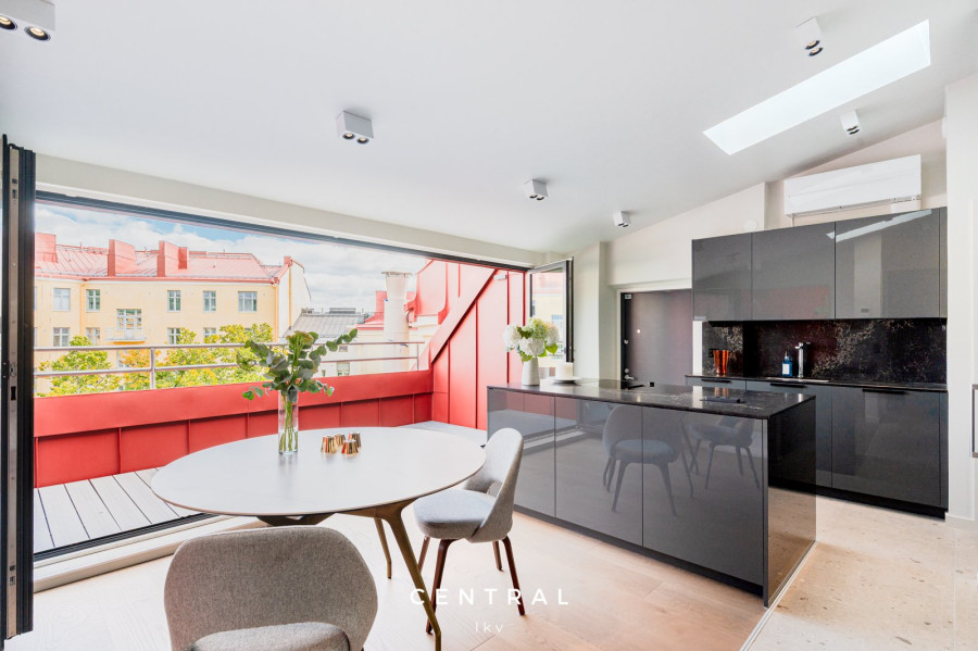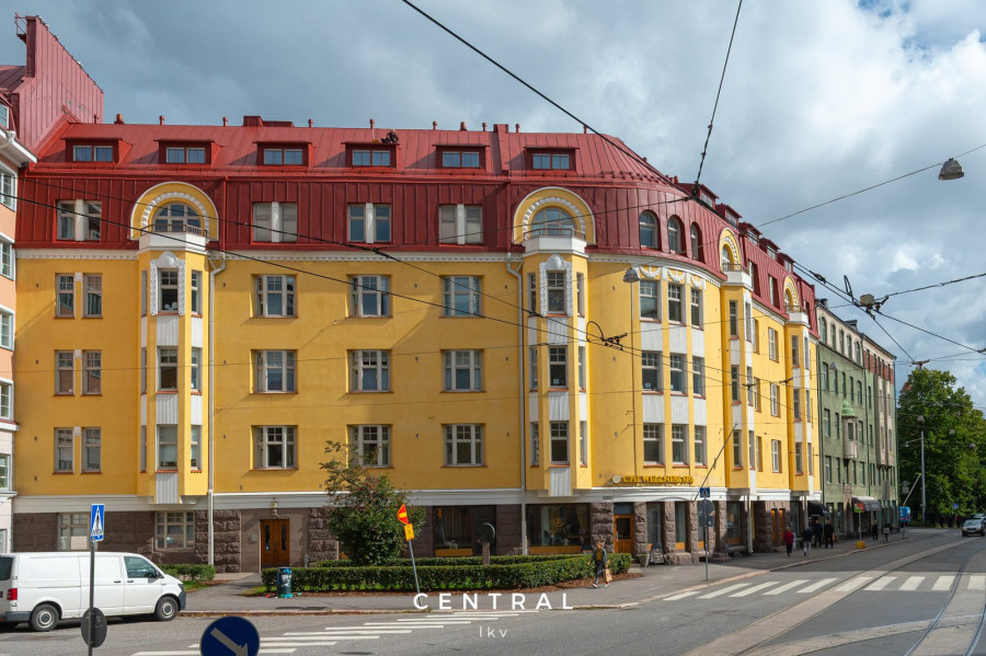 Etu-Töölössä aivan Helsingin ydinkeskustan tuntumassa sijaitsevan vuonna 1912 valmistuneen kauniin jugendtalon ylimmän kerroksen läpitalon huoneisto. Tämä persoonallinen kattohuoneisto on rakennettu vuonna 2023 ja toteutettu ensiluokkaisilla materiaaleilla, kalusteilla ja laitteilla. Korkeat huoneet ja upeat kaupunkinäkymät. Oma rauha ja harmonia, keskellä kaupungin sykettä. Isosta terassiparvekkeesta, jossa koko seinäsivun avattavat lasiliukuovet, on vehreät näkymät kauniille korttelipihalle koilliseen.