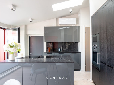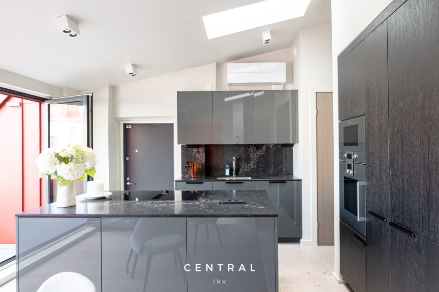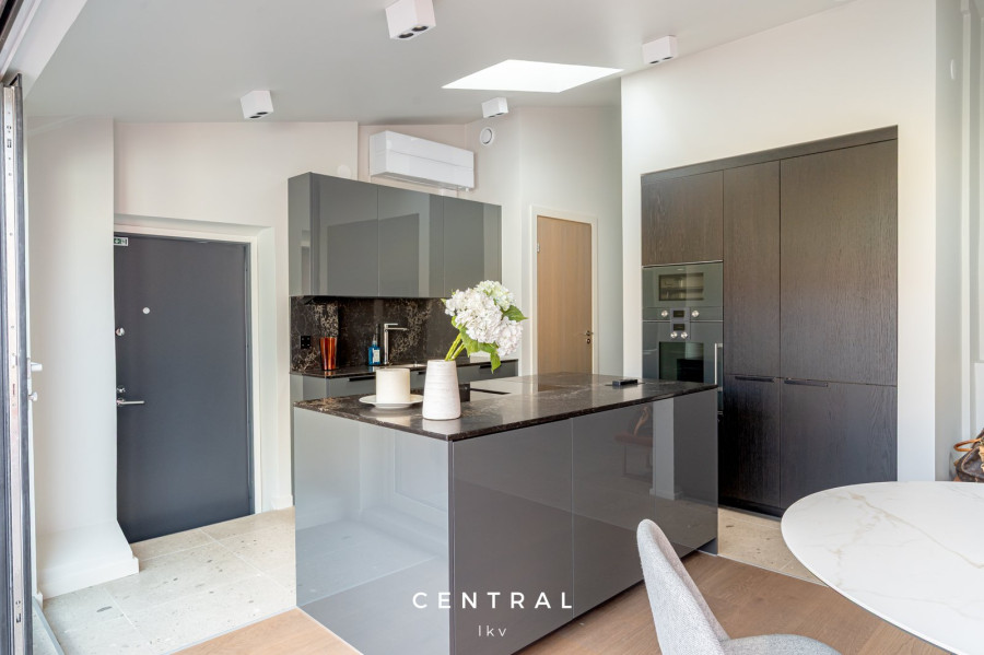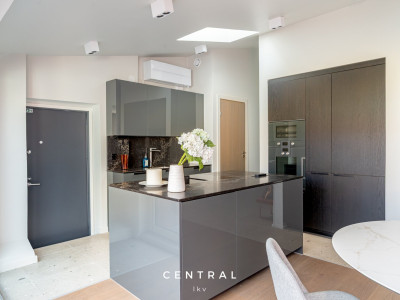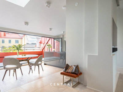 Tämä kahden makuuhuoneen asunto yhdistää hienostuneesti vanhan ajan charmia, korkeatasoista tyyliä ja modernia mukavuutta. Kylpyhuoneen yhteydessä on oma sauna rentouttavia hetkiä varten.