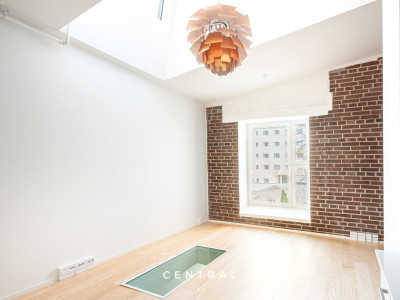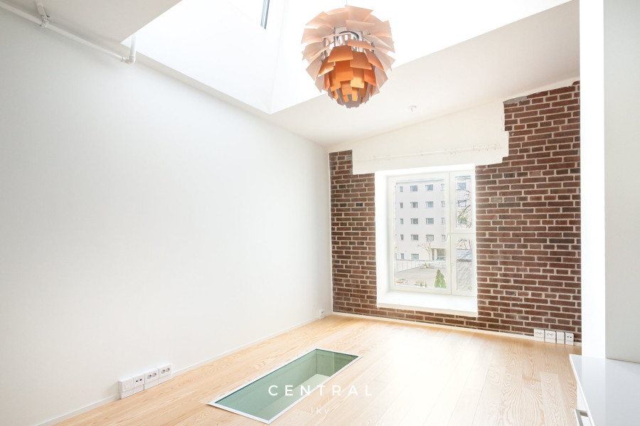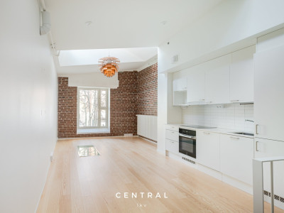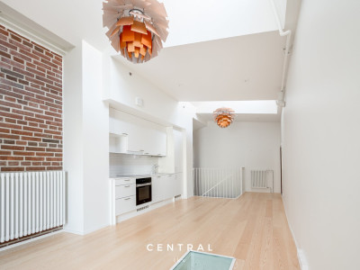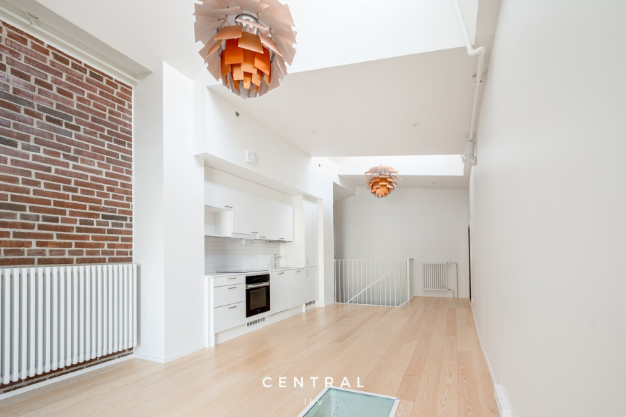 Tässä kulmapäädyn asunnossa yhdistyvät moderni design ja historiallinen charmikkuus. Avoin pohjaratkaisu, suuret ikkunat (myös kattoikkunat ja lattiaikkuna) ja korkea huonekorkeus tuovat runsaasti valoa ja avaruutta tiloihin.