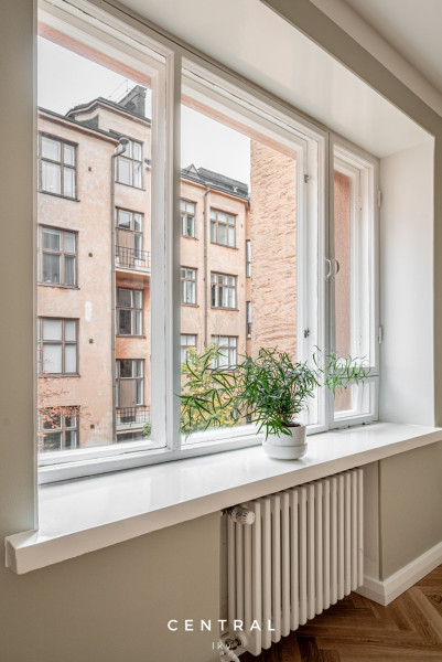 Asunto Oy Tark´ampujankatu 8:ssa on juuri valmistunut putkiremontti ja ikkunat kunnostetaan vielä loppusyksyn aikana. Tämä tyylikäs ja täysin remontoitu kaksiö tarjoaa muuttovalmiin ratkaisun keskeisellä sijainnilla olevaa asuntoa etsivälle. Tamminen Frevini kalanruotoparketti antaa ylellisen vaikutelman valoa tulviviin huoneisiin. Olohuoneen yhteydessä on kompakti ja hyvin suunniteltu avokeittiö viinikaappeineen. Kolmas huone soveltuu vaikka työpisteeksi tai vierashuoneeksi. Kylpyhuone on uusittu kokonaan putkiremontin yhteydessä. Materiaaleissa ei ole säästelty vaan ainoastaan laadukkaita materiaaleja on käytetty kaikissa pinnoissa ja kalusteissa. Asunnon yläpuolella on koko talon kokoinen kattoterassi, joka kutsuu aamukahville tai rentoutumaan päivän päätteeksi. Tämä upea yksiö sijaitsee piharakennuksen ylimmässä kerroksessa eikä ympäristön liikenne häiritse asumista ja oleskelua. Kaikki Ullanlinnan palvelut, ravintolat ja kahvilat ovat lähietäisyydellä. Varaa oma esittelyaikasi heti.
