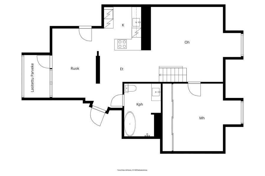 Huoneiston kokoonpano2h, avok, ruokailutila, parvi, kph/wc, las.parv.