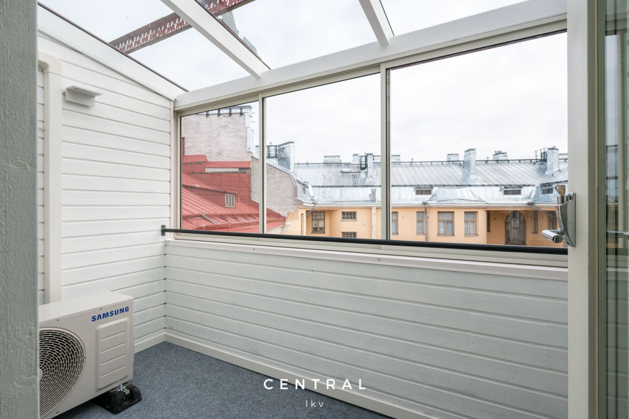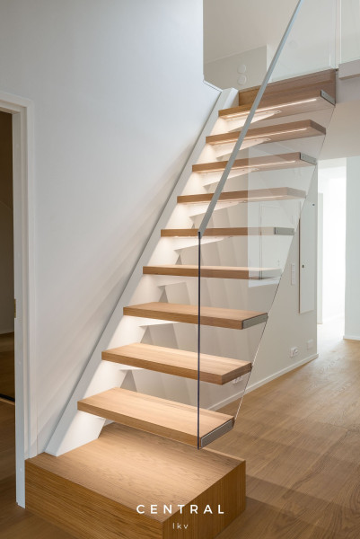 Avarassa olohuoneessa on näyttävä huonekorkeus ja suuret kattoikkunat jotka tuovat runsaasti valoa. Lasitettu kattoterassi toimii upeana jatkeena oleskelutiloille ja mahdollistaa viihtyisät hetket myös viileämpinä iltoina.