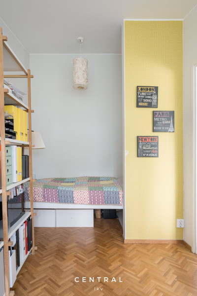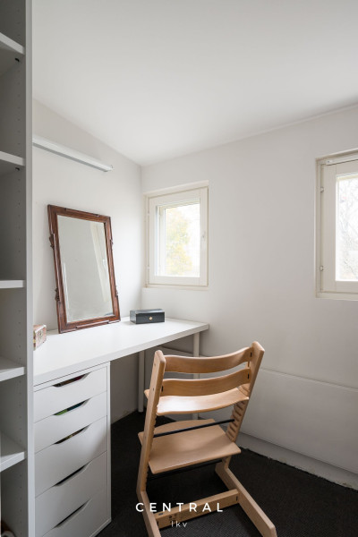 | Makuuhuoneen kuvaus | Makuuhuoneita on tällä hetkellä käytössä kolme, mutta pohjakerroksen askartelutila on myös toiminut makuuhuoneena. Yläkerrassa on myös arkiolohuone, johon saa helposti väliseinän rakennettua ja siitä näin ollen peräti viidennen makuuhuoneen. |