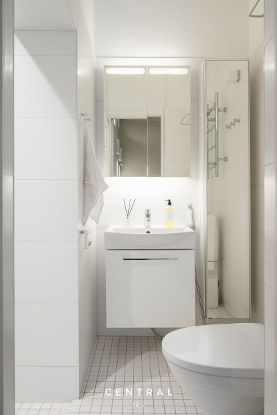 | Kylpyhuoneen varustetaso | Lattialämmitys (Kellarikerroksessa), wc-istuin, suihku, allaskaappi, pesukoneliitäntä, peili ja pesuallas |