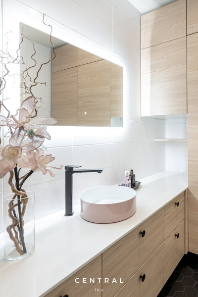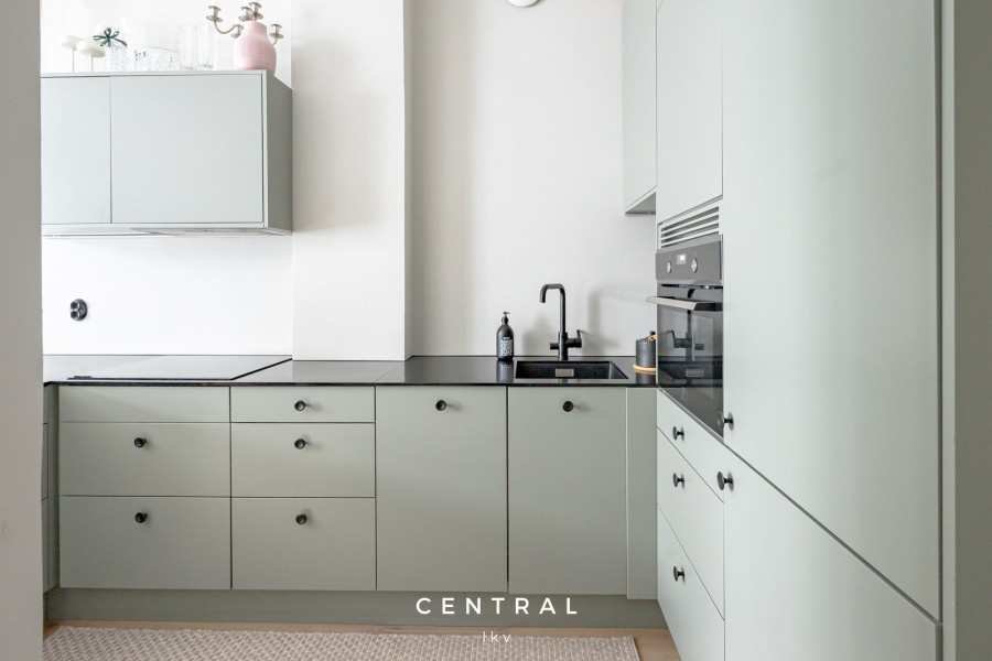 Keittiö on varustettu nykyaikaisilla laitteilla, kuten induktioliedellä, erillisuuni/micro ja kvartsikomposiittitasoilla.