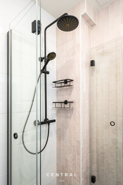 Makuuhuone sijaitsee rauhallisen sisäpihan puolella, ja tarjoaa runsaasti kaappitilaa. Tilava kylpyhuone on suunniteltu käytännöllisesti, ja sinne mahtuu myös pesukone, joka sisältyy kauppaan.