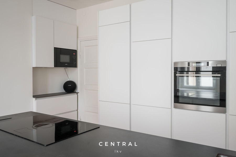 Keittiön kuvausTyylikäs ja tilava vuonna 2019 kauttaaltaan uusittu erillinen keittiö. Koko saarekkeen kokoinen yhtenäinen kivitaso, jonka toisella pituuspuolella jätetty istuintilaa noin 3:lle baarituolille. Induktioliesi integroidulla liesituulettimella. Monitoimiuunissa kaikki toiminnot (täysi höyrytoiminto, grilli, valmistusreseptit ja ruoan valmistusautomatiikka). Integroitu mikroaaltouuni, astianpesukone, jääkaappi ja pesukone. Keittiöstä kulku pihan puoleiseen portaikkoon, jossa hissi sekä kulku parvekkeelle.