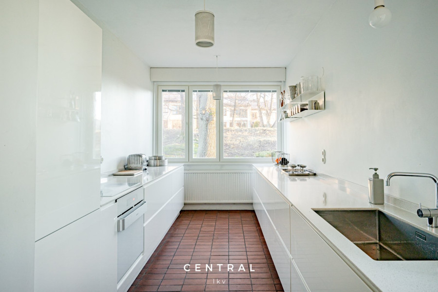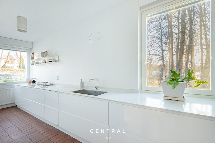 Keittiö on hyvin varusteltu ja isot ikkunat sisäpihan ja meren suuntaan.. Makuuhuoneet suuntautuvat vehreälle sisäpiha-alueelle, tarjoten näin täydellisen paikan rentoutumiselle. Tilavassa kylpyhuoneessa on myös merelliset näkymät, ja se tarjoaa erinomaiset puitteet arjen askareiden hoitamiseen.