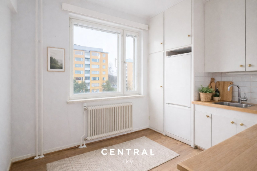 Asunnossa on tilava olohuone, josta pääsee suoraan parvekkeelle nauttimaan merellisistä maisemista. Keittiön alkuperäiset kaapistot tuovat asuntoon nostalgista tunnelmaa. Kyllpyhuoneessa on kaikki tarvittavat mukavuudet, kuten suihku ja bideesuihku. Makuuhuoneessa on säilytystilaa alkuperäisissä komeroissa, ja koko asunnossa on laminaattilattiat.