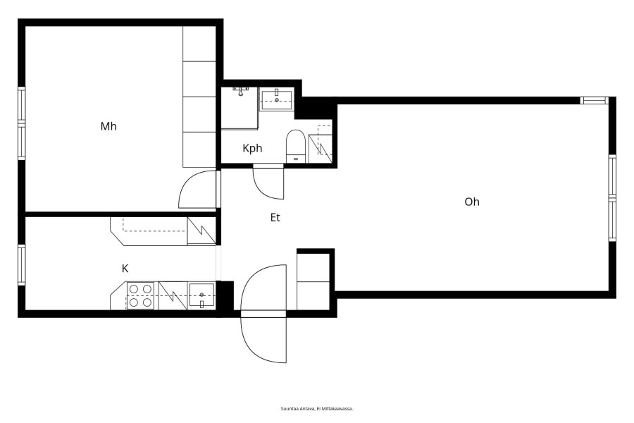 | Huoneiston kokoonpano | 2h, k, kph/wc |