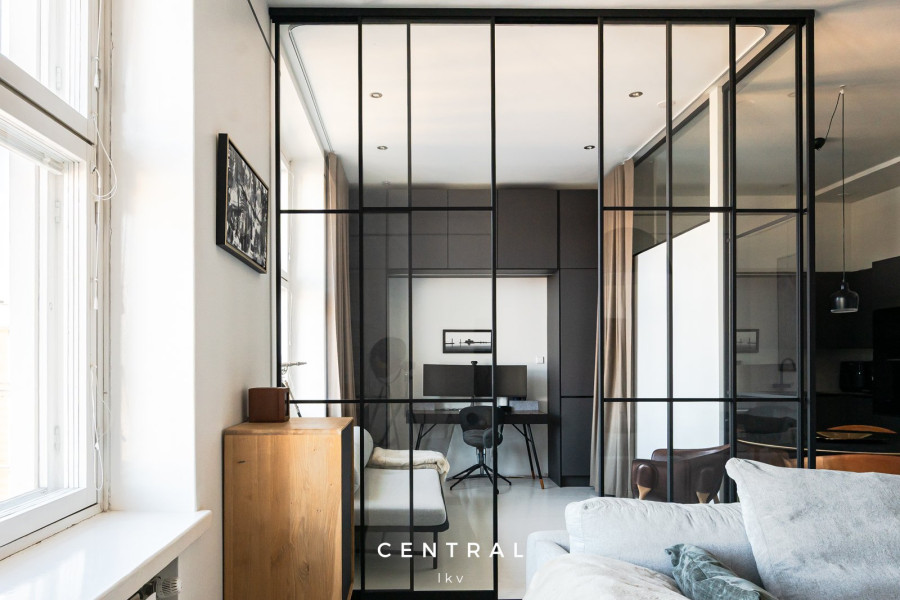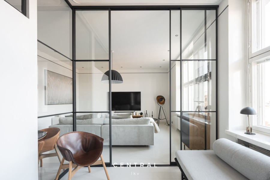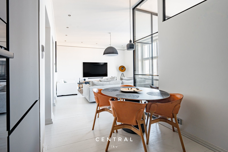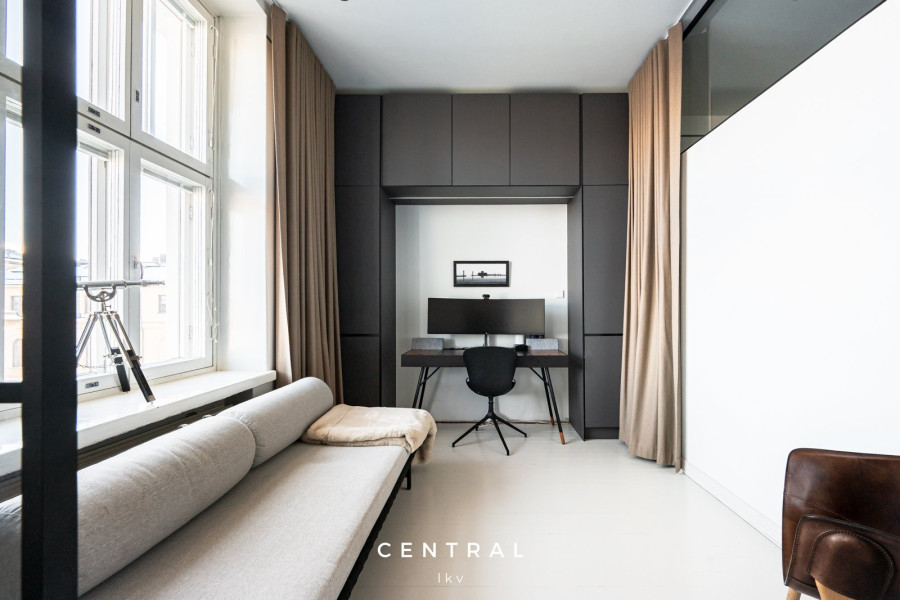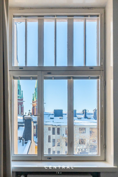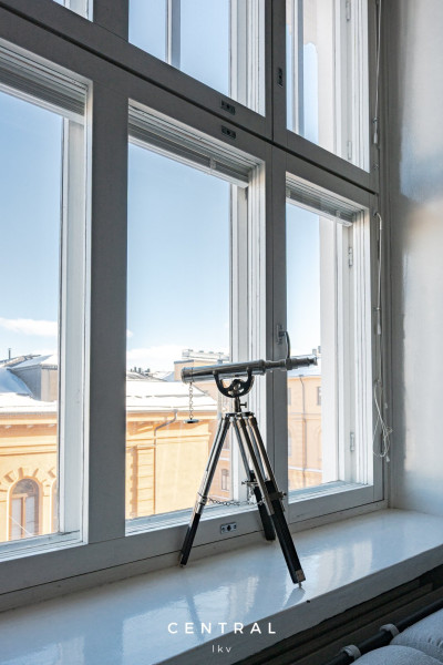 Huoneiston korkeista ikkunoista tulvii luonnonvaloa, ja huoneiston tyylikäs sisustus on toteutettu erittäin tasokkailla materiaaleilla- kattokorkeus (n.3m) lisää tilan tuntua.