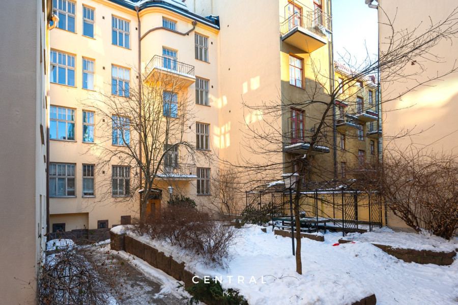 Upea ja valoisa läpitalon huoneisto Kasarmikadulla, Kaartinkaupungin sydämessä.