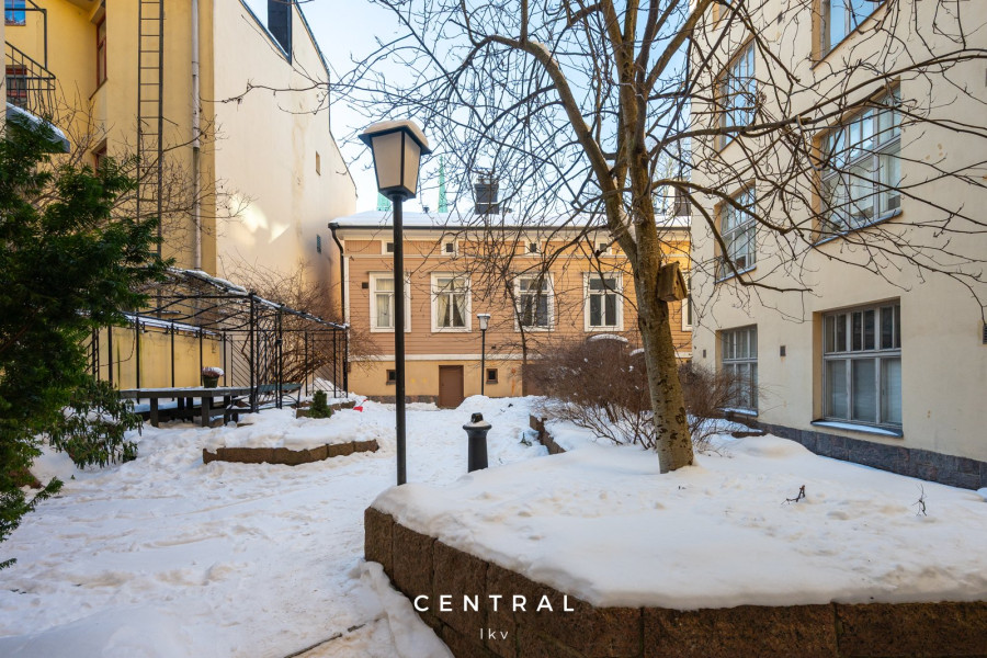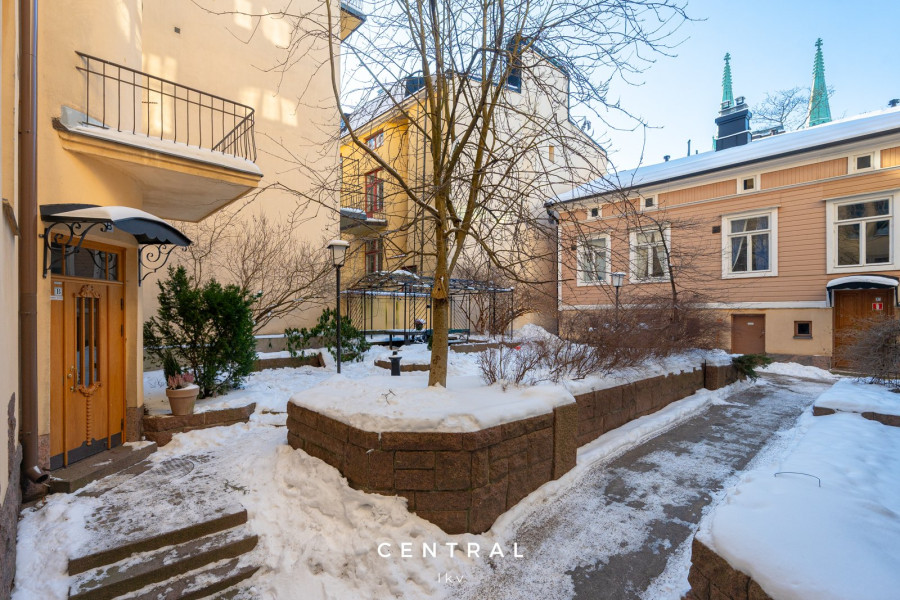 Kaartinkaupungin ja Ullanlinnan monipuoliset palvelut ovat käden ulottuvilla, ja merenrantaan sekä Esplanadille on vain lyhyt kävelymatka. Raitiovaunupysäkki on myös lähellä, joten liikkuminen on vaivatonta.