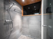 | WC:n kuvaus | Tyylikäs koriste seinäkivetys yhdistyy tyylillä laattaseinään, puupanelikatto |