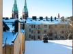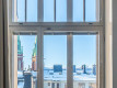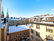 Masterbedroomista näkymät sisäpihan suuntaan aina Johanneksen kirkon torneille.
