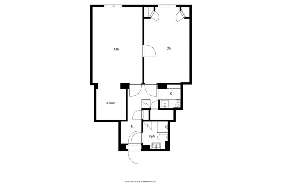 | Huoneiston kokoonpano | Oh, mh, alkovi, kk, kph/wc, et |