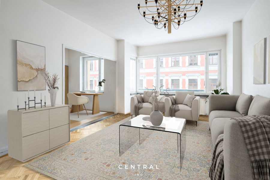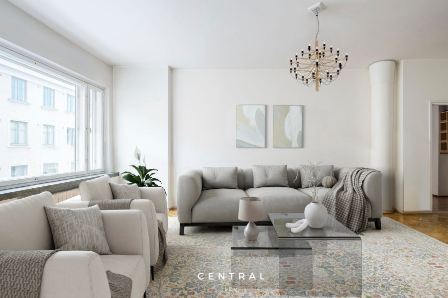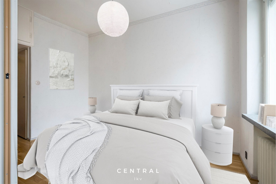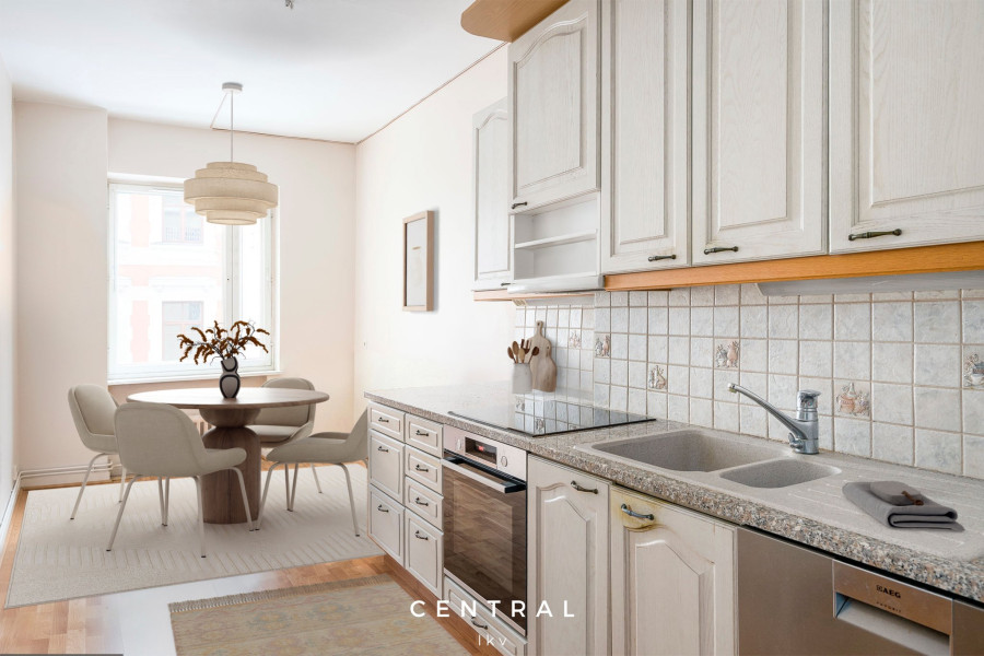 Stämningsfull funkisvåning på fjärde våningen, hiss finns. Stora fönsterytor och vacker stadsvy. Bottenplan som möjliggör olika lösningar - välkommen och planera ett hem som passar just dig! Här bor du i en stadsdel nära allt, men med lugna stillsamma gator och vackra gamla byggnader. Kronohagen har en alldeles egen slags stämning, nära havet och trevliga promenadsstråk, mångsidig service och goda trafikförbindelser; inte långt från tåg och metro.