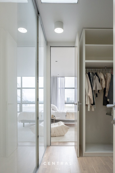Paritalo-huoneistossa yhdistää moderni asumismukavuus ja ainutlaatuiset merinäkymät, jotka avautuvat suurista lattiasta kattoon ulottuvista ikkunoista.