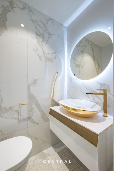 | Kylpyhuoneen seinämateriaali | Iso marmorilaatta |