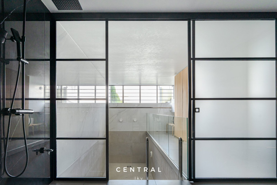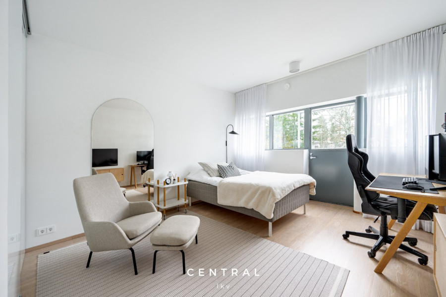 Yläkerrassa sijaitsevat kolme makuuhuonetta tarjoavat rauhalliset tilat perheelle, ja alakerran makuuhuoneesta on suora yhteys omalle sisäpihalle.