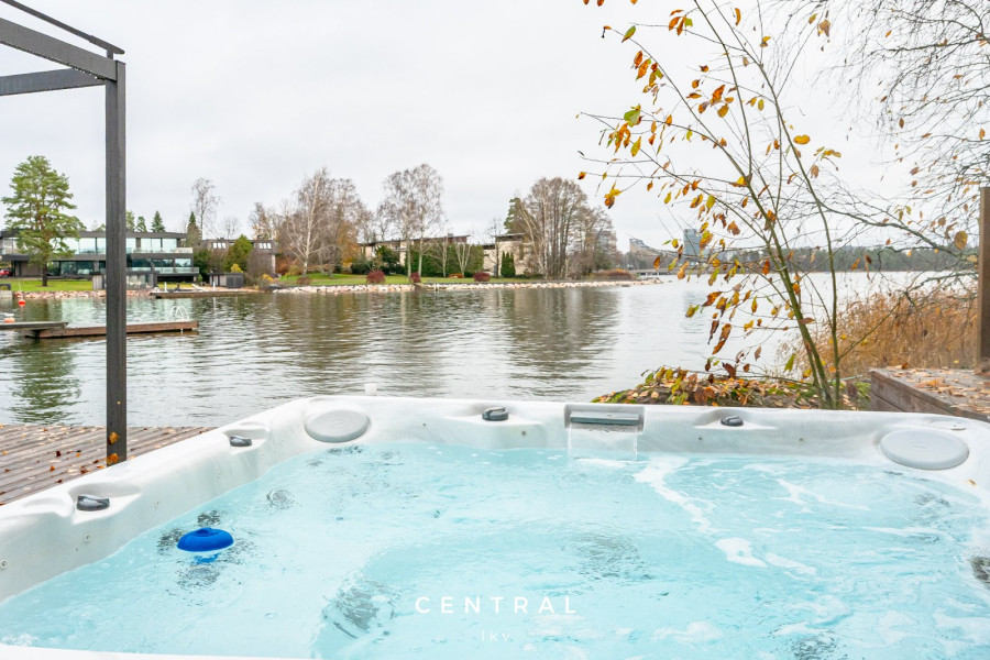 Talon piha-alueella on oma merenranta, jossa poreallas ja terassi-alue