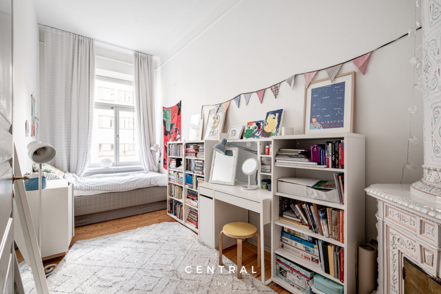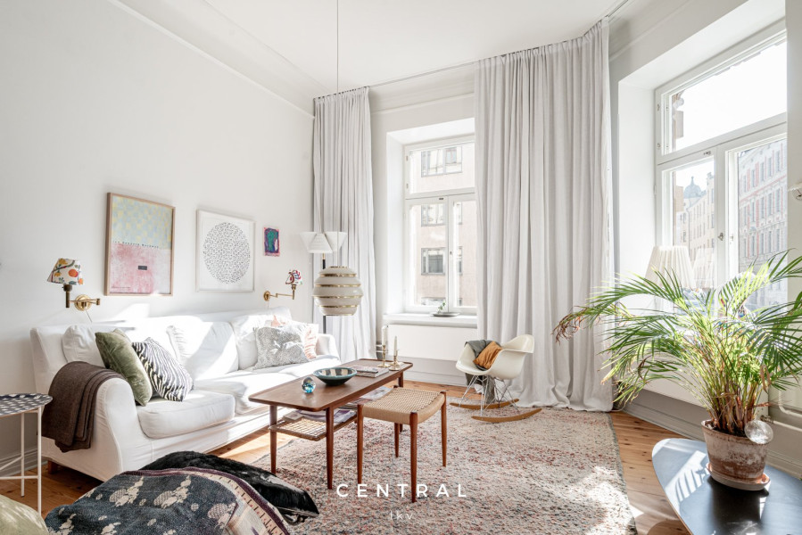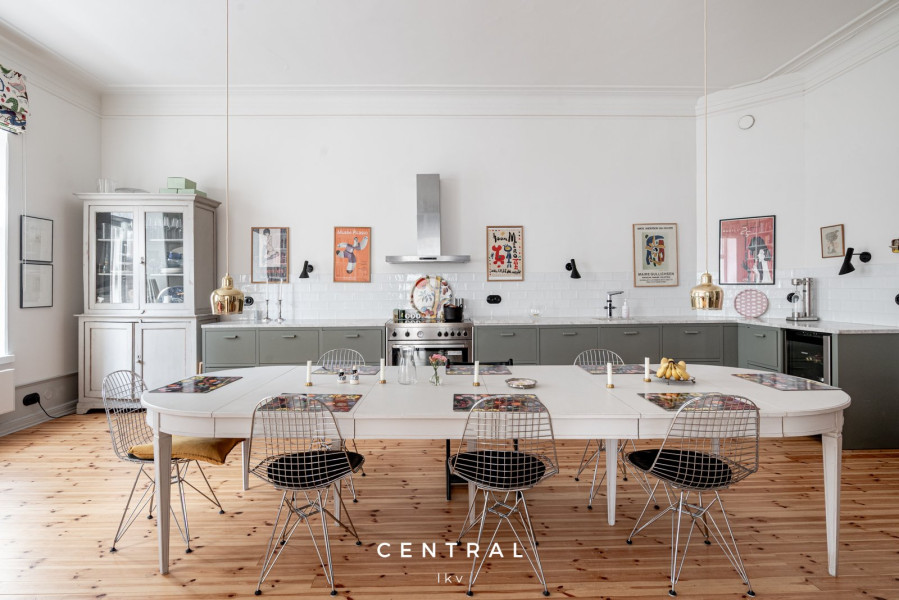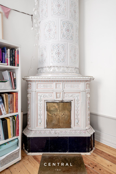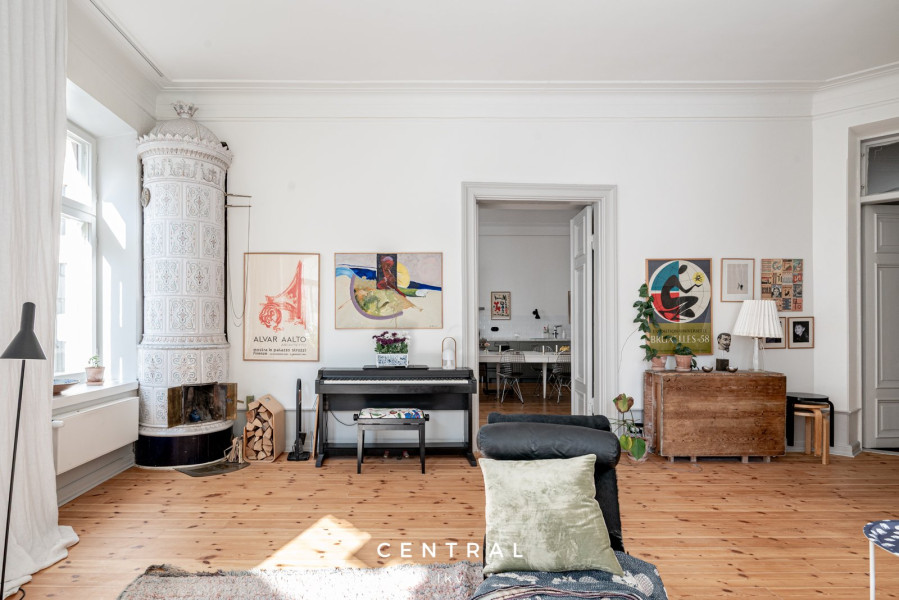 Nyrenässans när det är som bäst. Fyra kakelugnar, hörnlägenhet med ett kök som rymmer större sällskap. Ett stort masterbedroom och två mindre sovrum gör detta kulturhem till ett perfekt familjehem.