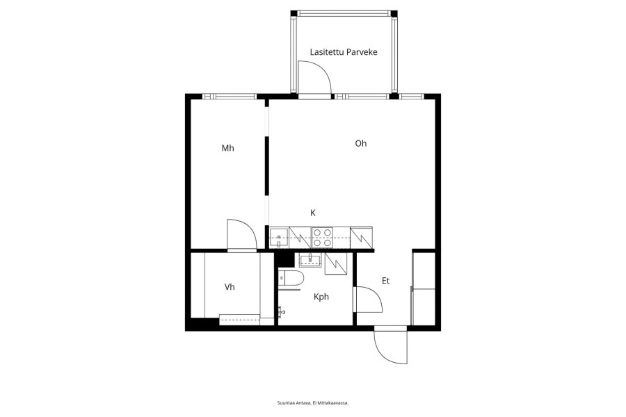 Huoneiston kokoonpanooh, mh, avok, kph/wc, vh, et, lasitettu parveke