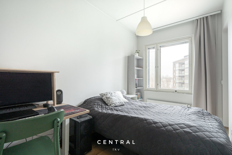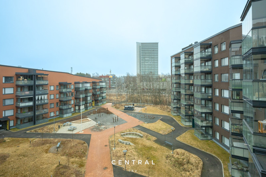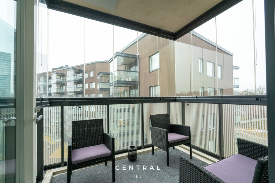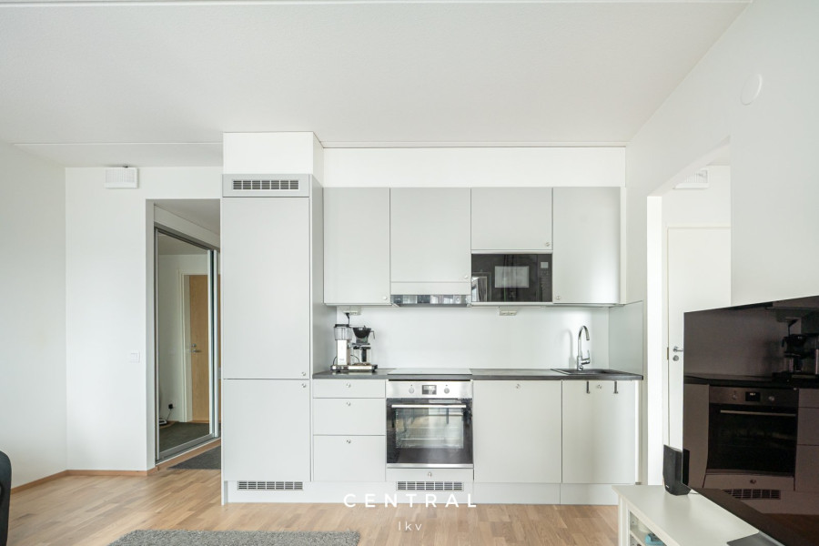 Asunnon avokeittiö on laadukkaasti varusteltu, ja olohuoneesta on käynti etelään suuntautuvalle lasitetulle parvekkeelle, josta avautuvat avarat näkymät sisäpihalle. Makuuhuoneessa on tilaa niin työpisteelle kuin suurelle sängyllekin, makuuhuoneen yhteydessä myös vaatehuone.