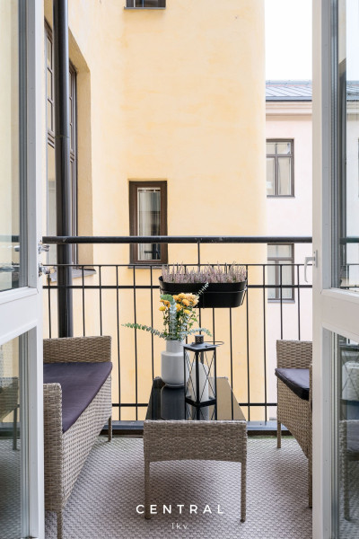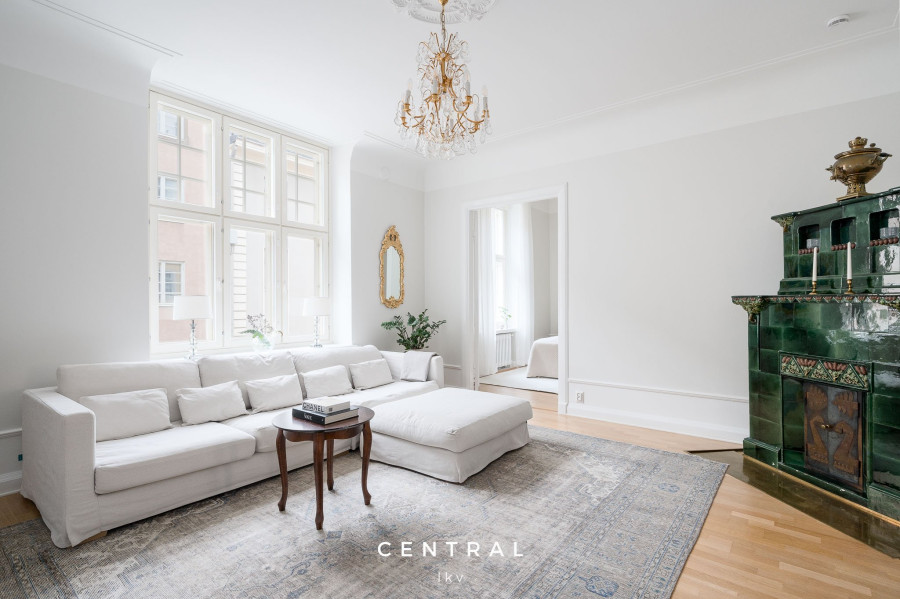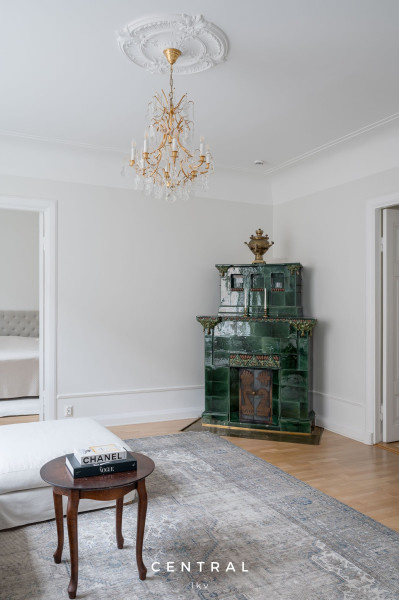 Elegant jugendvåning med imponerande takhöjd, vackra kakelugnar och egen balkong. Klar planlösning med sammanlagt fyra sovrum. Helheten består av två bostadsaktier, varav en 17m2 enrummare som går separera från resten. Denna etta har naturligtvis en egen ingång och fungerar bra som t.ex. ett hemkontor. Här bor du alldeles i Helsingfors kärncentrum men ändå på ett lugnt område. Kort promenadavstånd till järnvägsstationen och för övrigt mångsidigt serviceutbud och trafikförbindelser.
