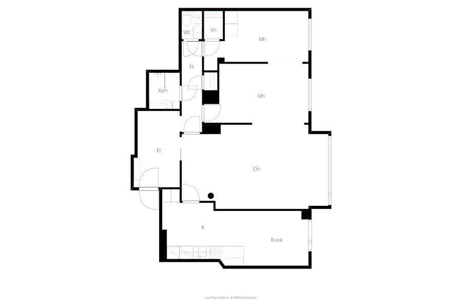 | Huoneiston kokoonpano | 3h, k, kph, wc, eteinen |