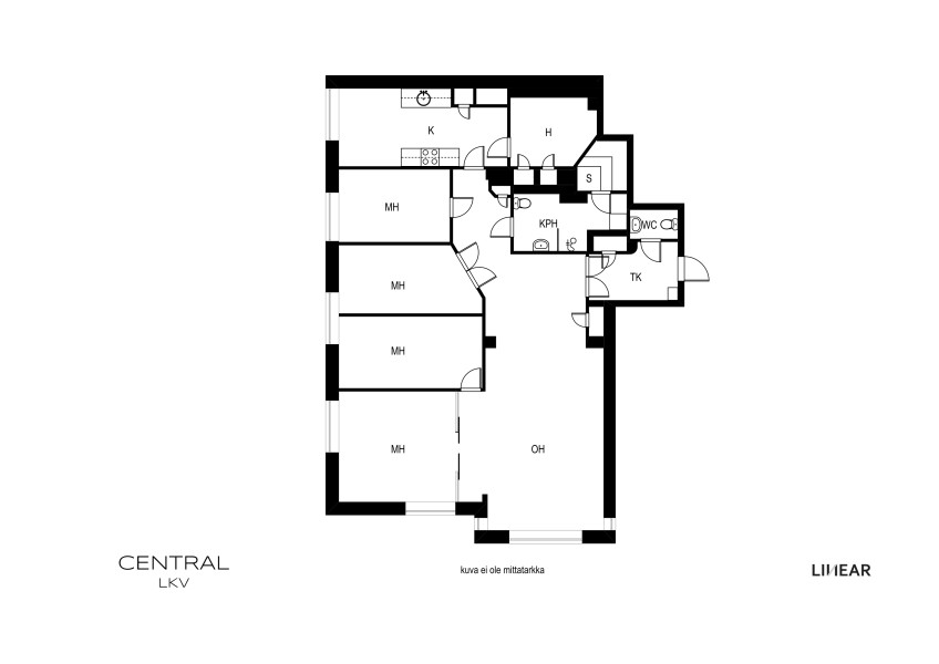 Huoneiston kokoonpano5h, k, työh/khh, kph/wc, erill.wc, s
