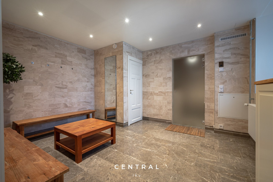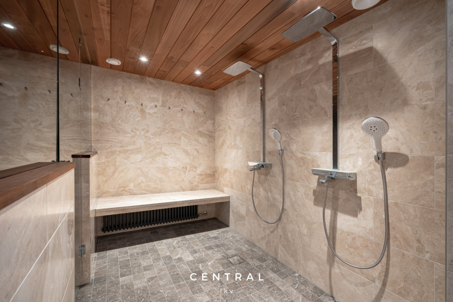 | Kylpyhuoneen seinämateriaali | Kaakeli ja marmori |