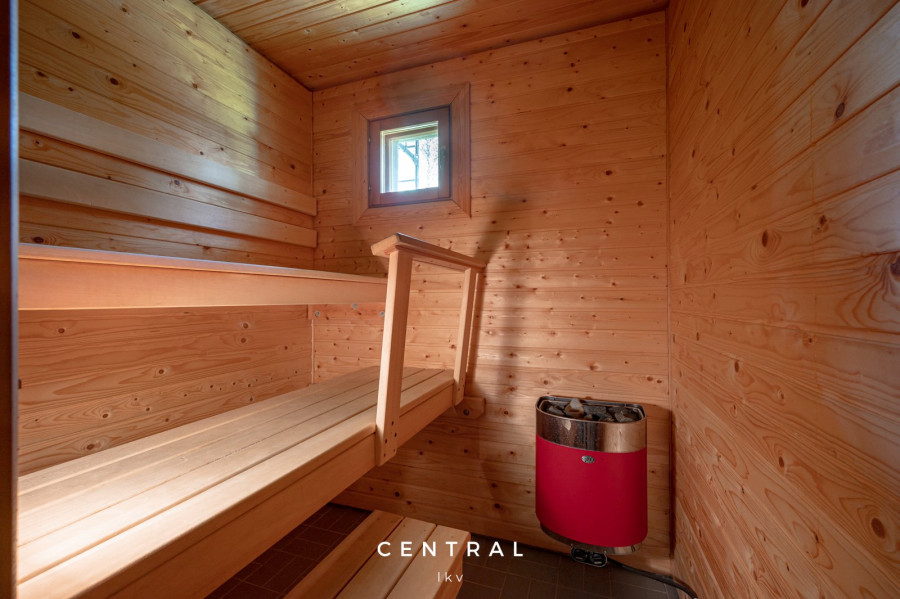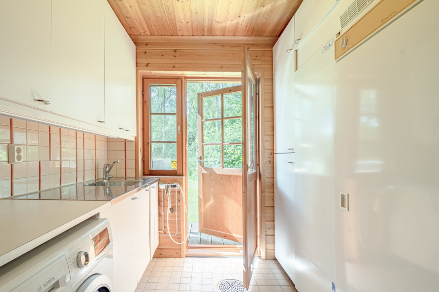 Päätalon sauna/kph-osasto on tilava, saunaosaston vieressä kohdinhoitohuone, josta kulku takapihan terassille.. Sisäpihan suuntaan avautuva terassi on täydellinen paikka nauttia kesäpäivistä ja rentouta kiireen keskeltä. Kaunis järvimaisema rauhoittaa mieltä ja puhdasvetinen järvi houkuttelee uimaan.