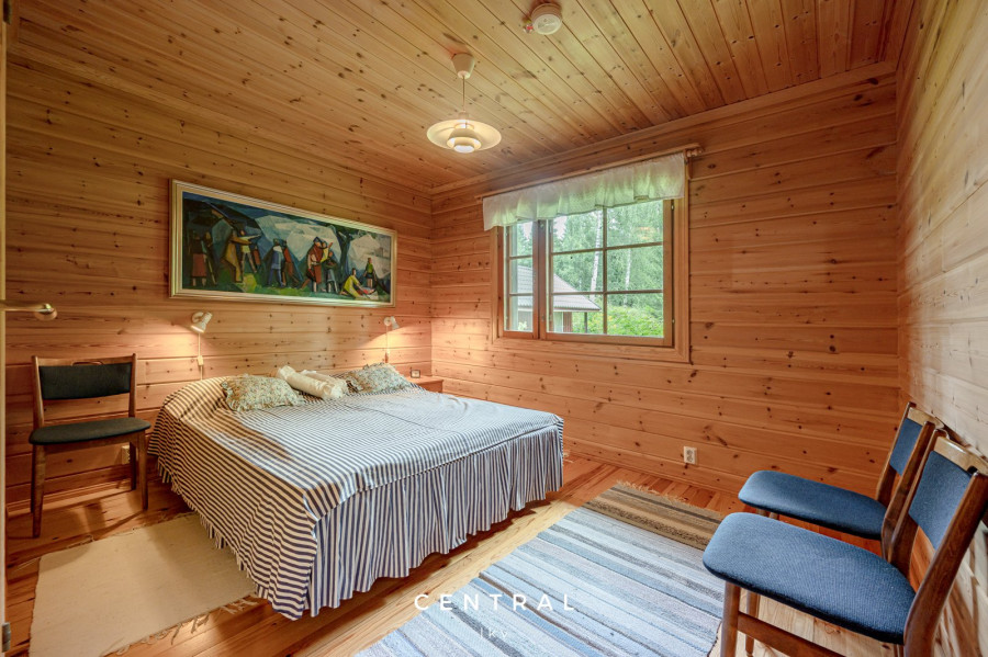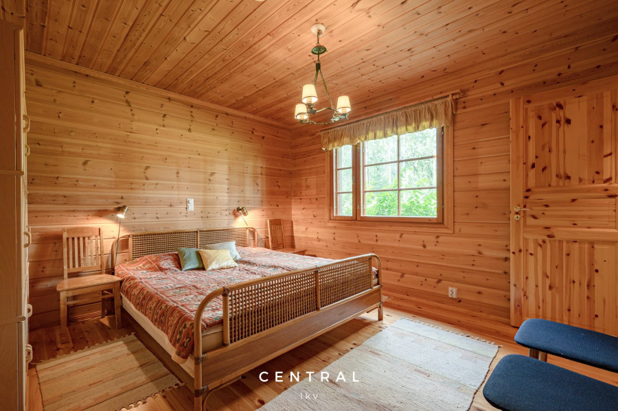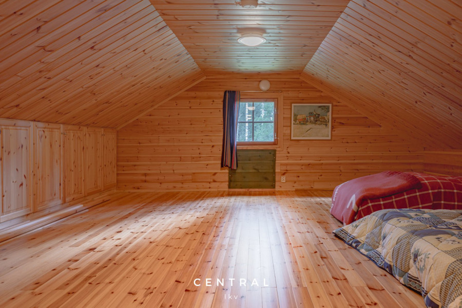 Makuuhuoneen kuvaus | 3 makuuhuonetta alhaalla, yläkerran parven yhteydessä iso ullakkotila; toimii myös yhtenä makuutilana. |