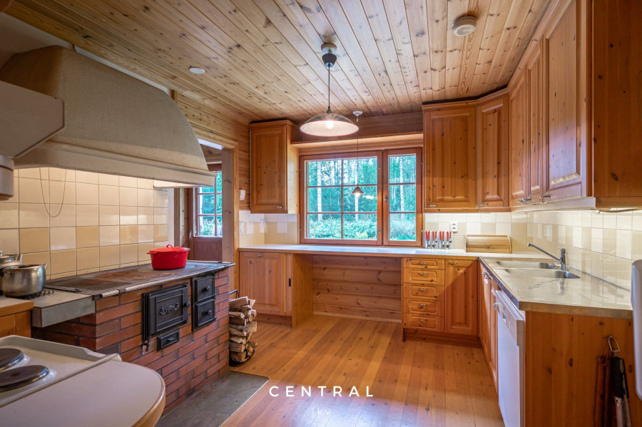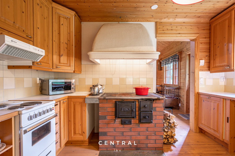 Lämmitys | Ilmavesilämpöpumppu, sähkö, kattolämmitys, puu ja iso takka, joka yhdistetty leivinuuniin |