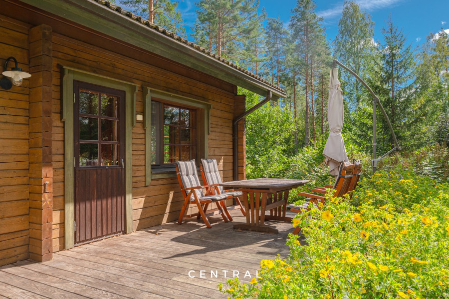Vuonna 1995 valmistunut hirsirakenteinen huvila sijaitsee rauhallisella ja luonnonkauniilla Etelä-Savon alueella, jossa oma ranta sekä vehreä piha omenapuineen ja nurmialueineen luovat idyllisen ympäristön.