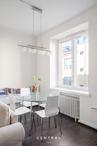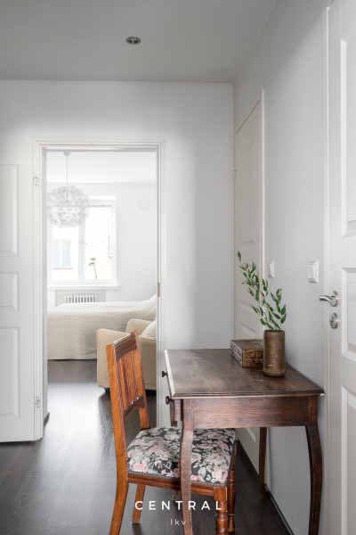 Välkommen att bekanta er med denna trivsamma, ljusa tvåa med centralt läge alldeles invid Stora Robertsgatans, Fredriksgatans och kärncentrums övriga serviceutbud. Bostaden ligger på husbolagets innergård och erbjuder ett därmed ett fridfullt boende, trots det mycket centrala läget. Vardagsrummet och det stora öppna köket bildar en trevlig helhet, som gjord för samvaro och trivsamma hemmastunder. Sovrummet är rymligt och det finns rikligt med förvaringsutrymme - hela sidoväggen täcks av klädskåp och en inbyggd TV hylla. Badrummet med dusch är renoverat i samband med linjesaneringen år 2020. Separat wc invid badrummet samt ett hemvårdsutrymme med plats för tvätt-torn.