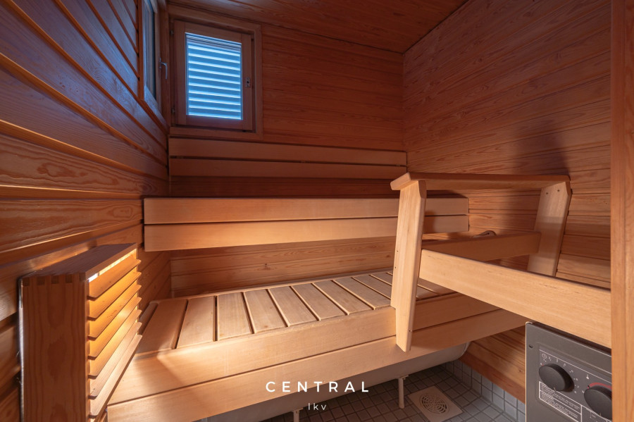 Yläkerrassa on kaksi makuuhuonetta, ja yksi makuuhuone sijaitsee alakerrassa. Tilava kylpyhuone on varustettu kahdella suihkulla ja kodinhoitotilalla. Lisäksi asunnossa on oma sauna, jossa voi rentoutua päivän päätteeksi.