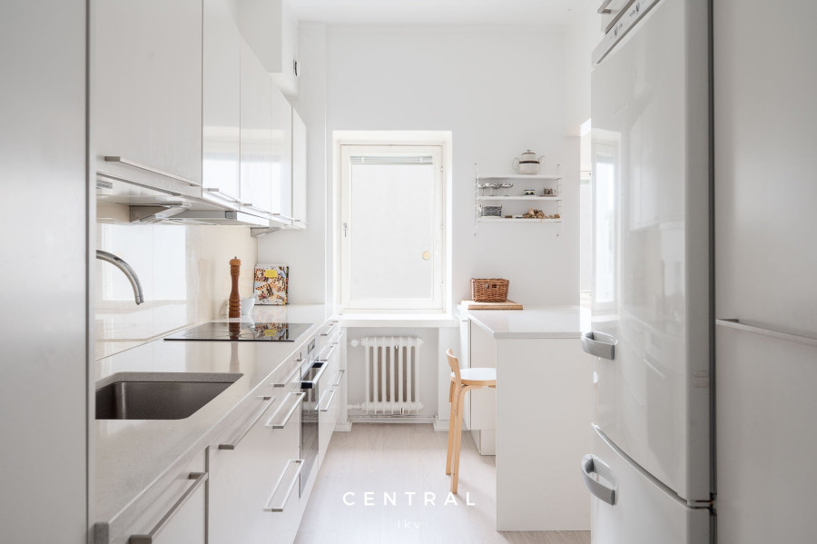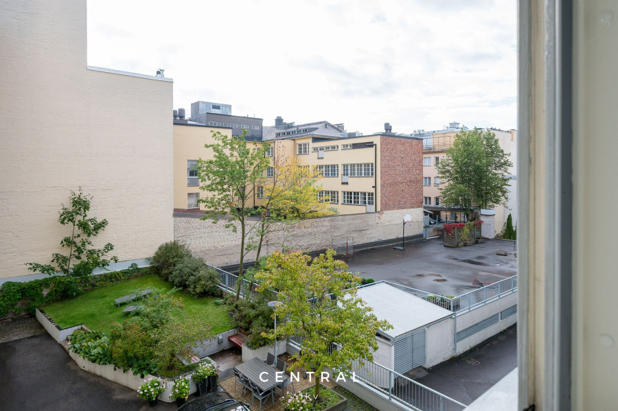 Olohuoneessa on erkkeri-ikkuna, joka tuo runsaasti luonnonvaloa ja avaa pääsyn parvekkeelle. Keittiö on käytännöllinen ja varusteltu kivitasoilla sekä saarekkeella, ja sen ikkunasta avautuu rauhallinen näkymä. Makuuhuoneen iso ikkuna suuntautuu Punavuorenkadulle, tarjoten rauhallisen paikan levähtää kaupungin vilinästä.