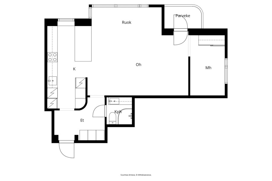 Huoneiston kokoonpano | oh, mh, avok, kph/wc, et, parveke |