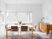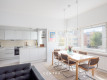 Olohuoneen kuvaus | Olohuoneessa ruokailutila erkkeri-ikkunan edessä, kulku parvekkeelle |