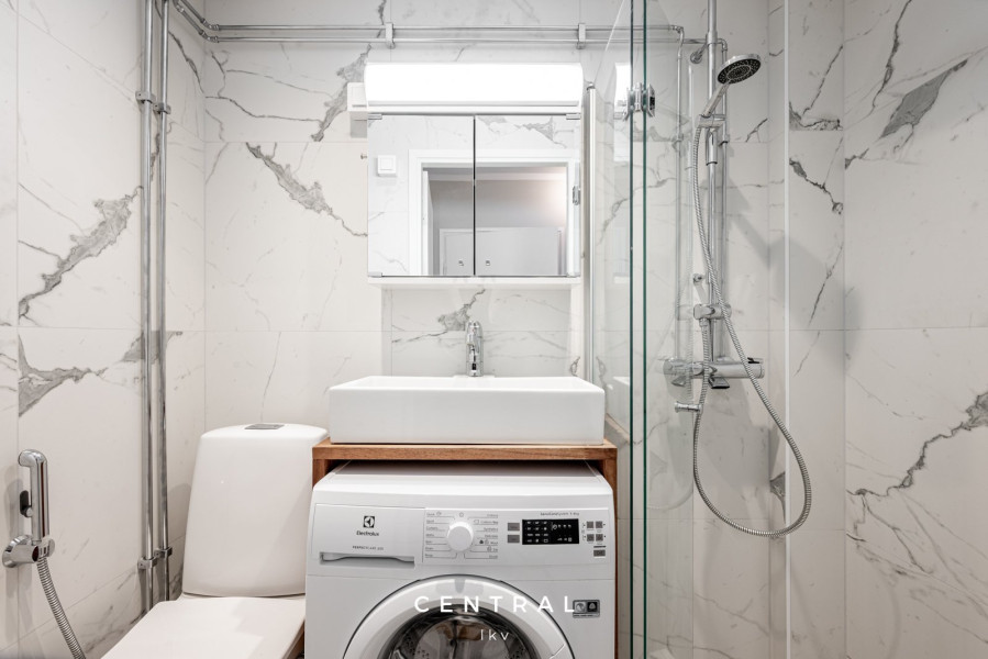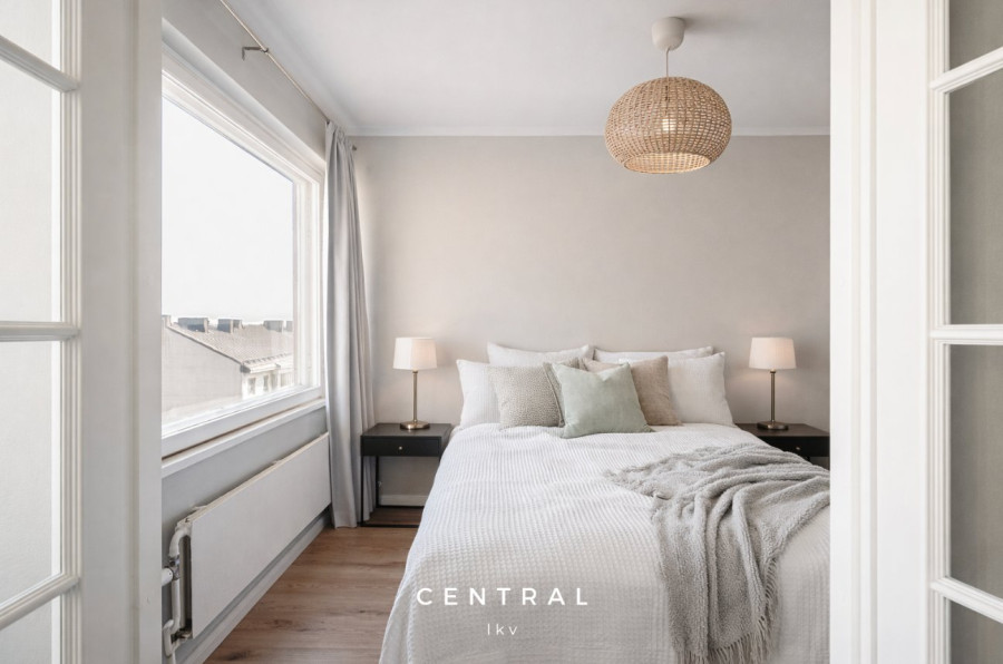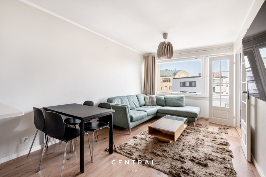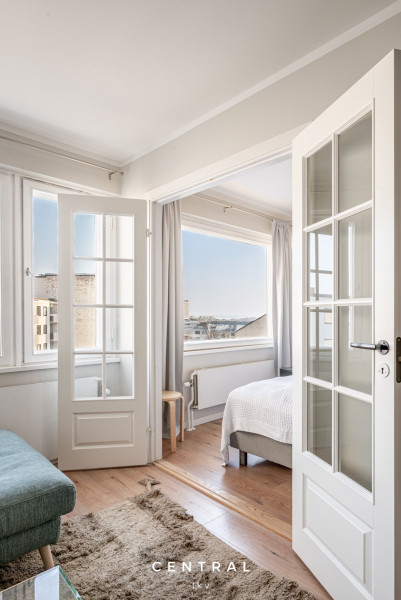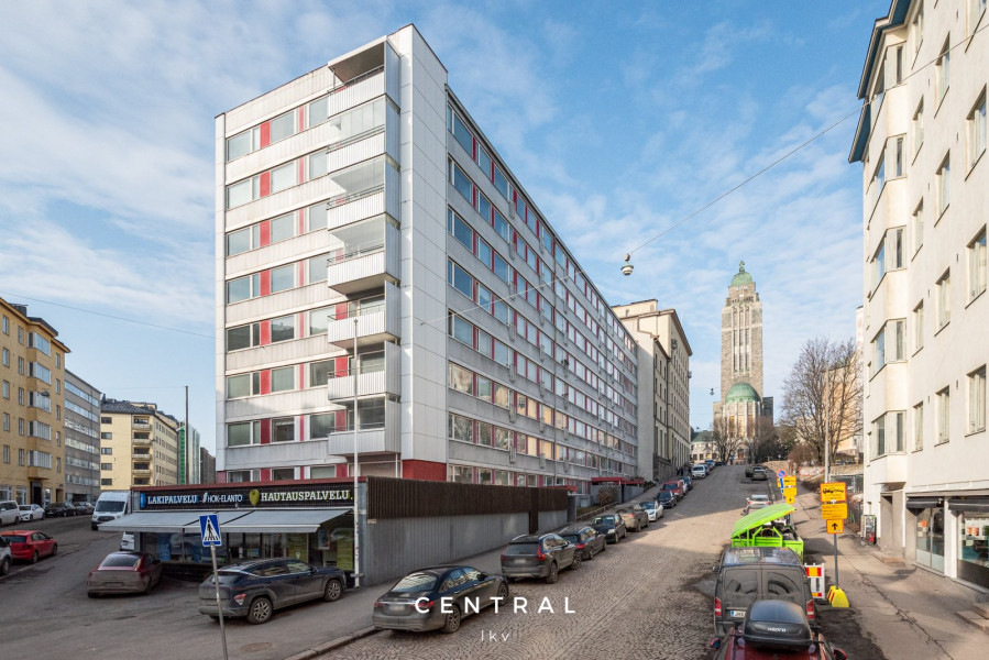 Kallion kirkon vieressä, ylimmässä kerroksessa sijaitsee tämä valmiiksi kalustettu koti. Isot ikkunat joista näkee kattojen yli aina merelle saakka antaa tälle asunnolle maagisen tunnelman. Täysi rauha kotona mutta kuitenkin muutaman minuutin kävelymatka Hakaniemen torille ja vielä alamäkeen