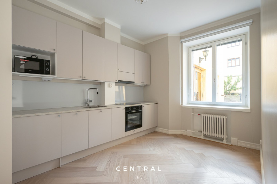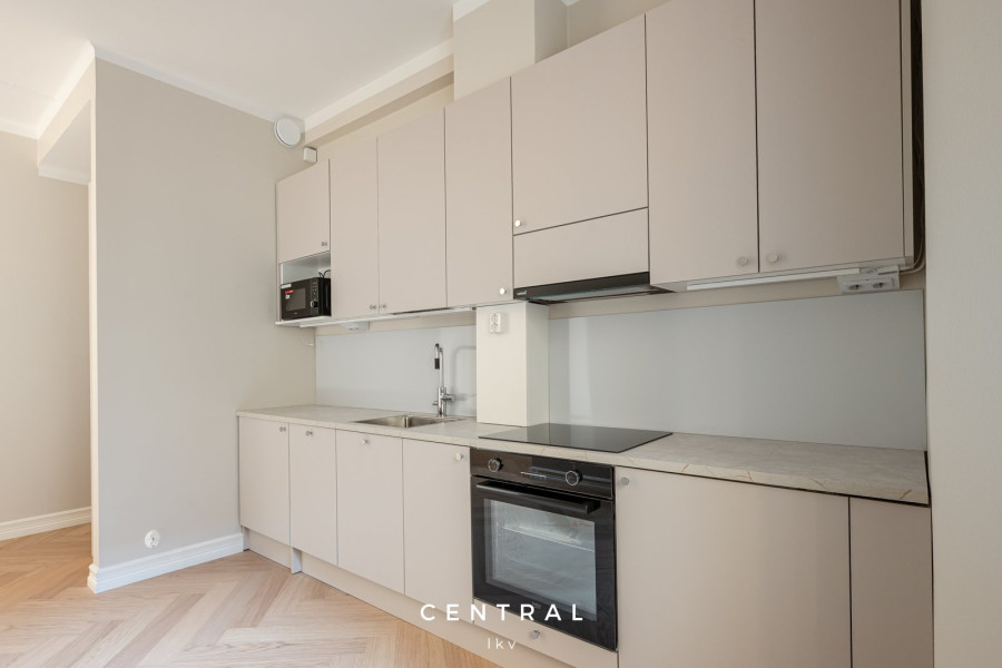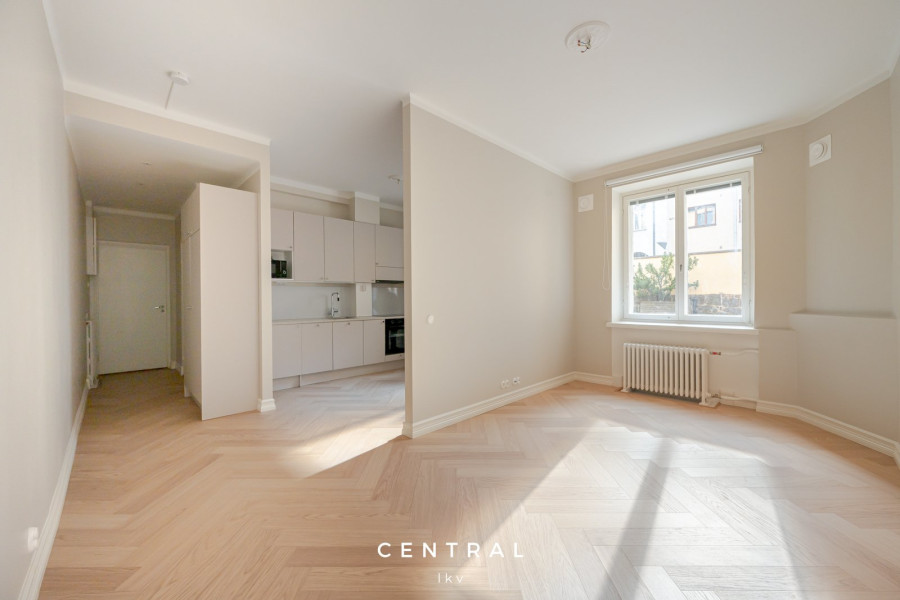 Ljus och trivsam, totalrenoverad hyreslägenhet på Fabiansgatan, nära centrum. En vägg mellan kök och vardags-/sovdel skapar tydlighet i lägenheten.