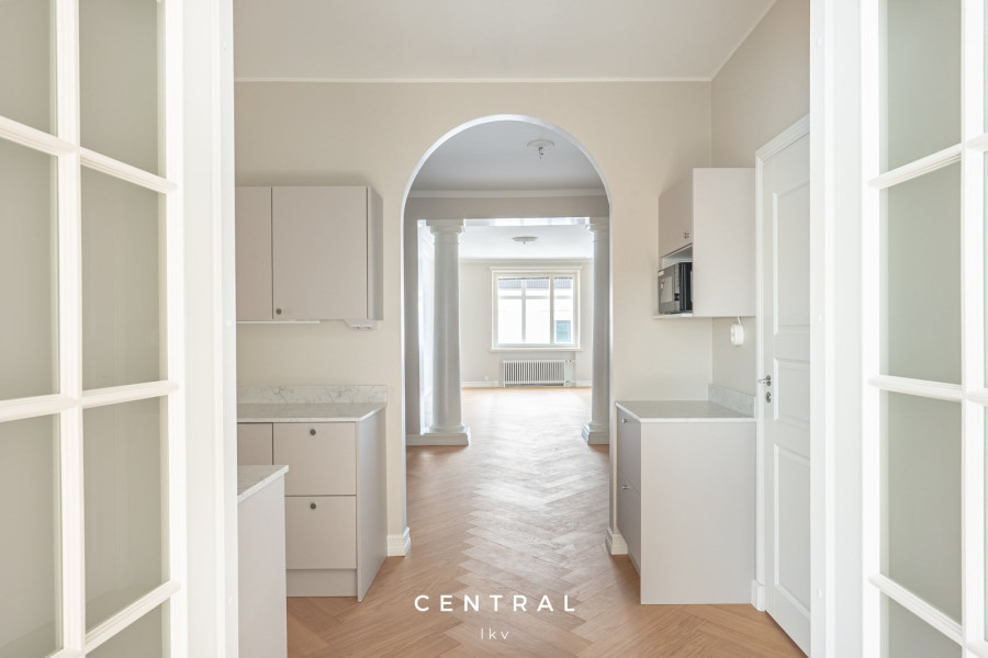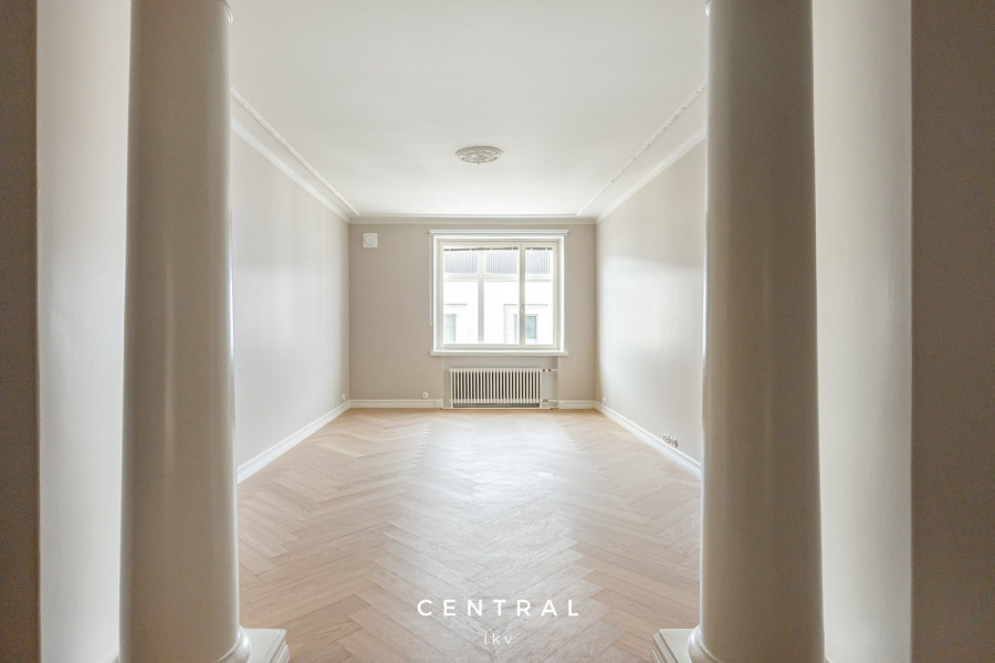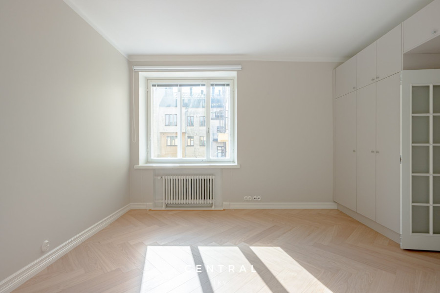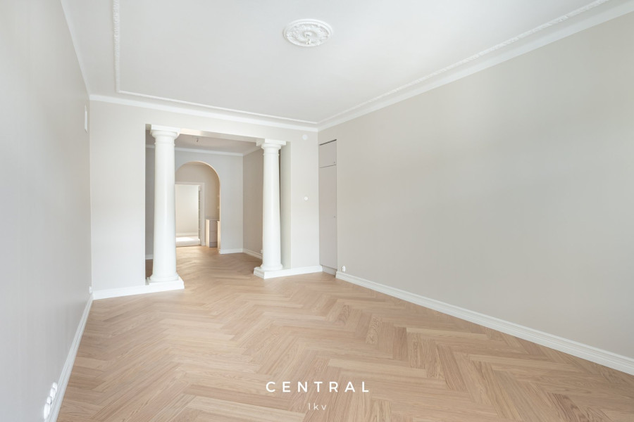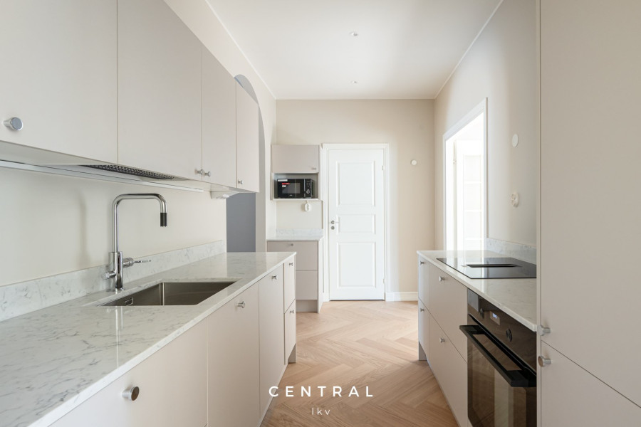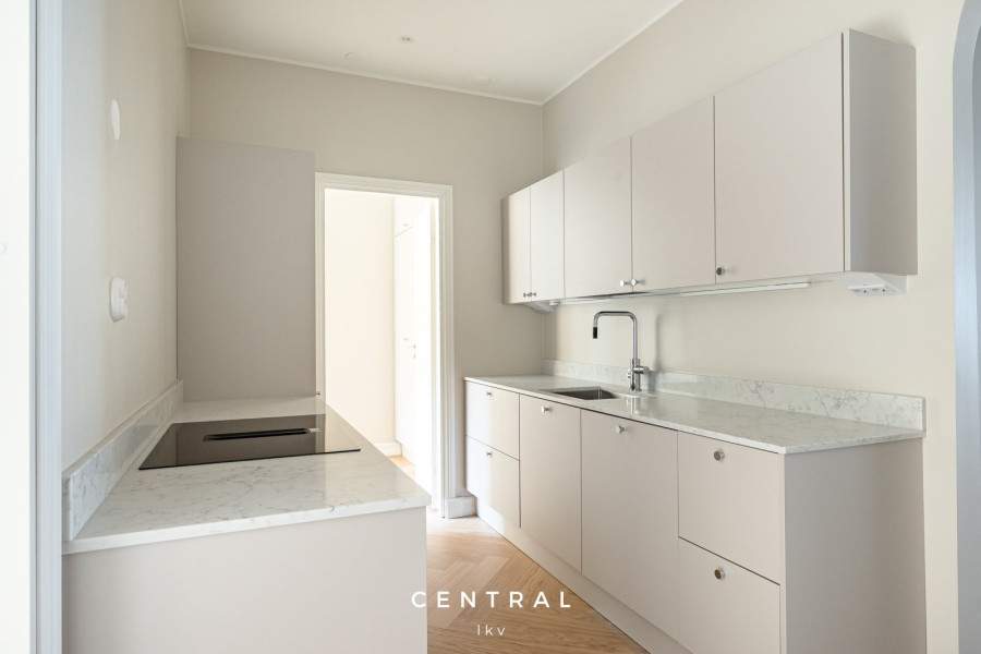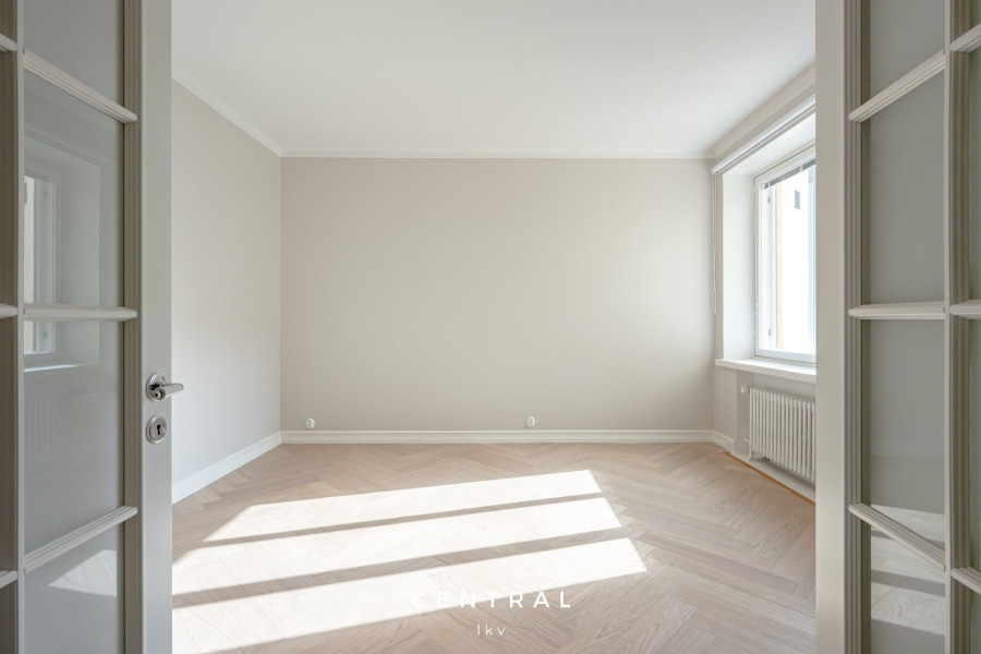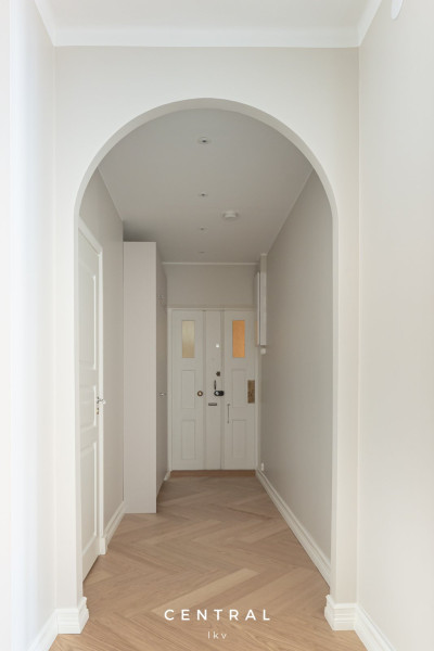 Valoisa ja tyylikkäästi remontoitu vuokra-asunto, jossa on kauniit vaaleat pinnat ja yhtenäinen parkettilattia. Tilavat huoneet ja suuret ikkunat tuovat runsaasti luonnonvaloa.