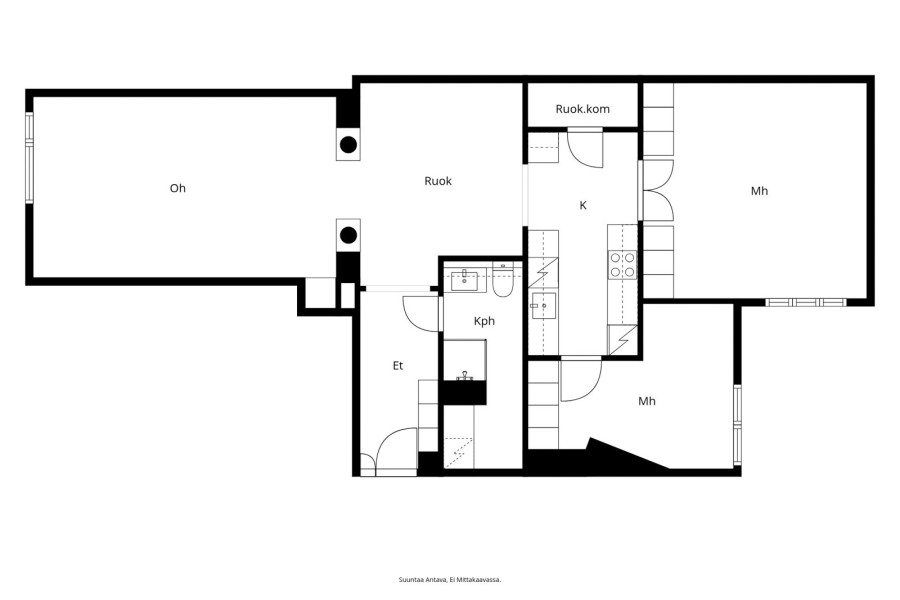 | Huoneiston kokoonpano | oh, 2mh, k, h, vh, kph/wc, et |