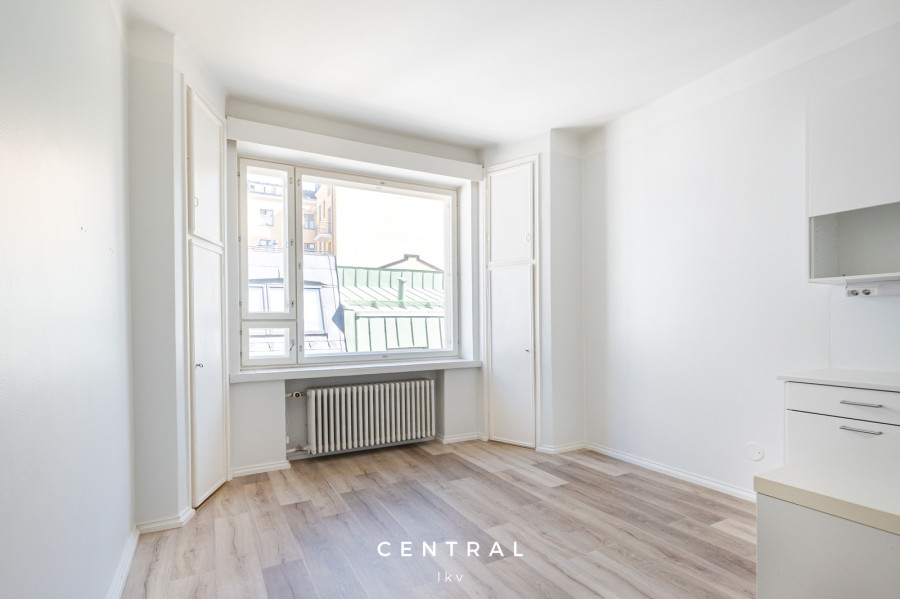 Spacious one bedroom unfurnished flat with excellent location in the Helsinki city center. Located at the 4th floor, the flat is boasting an abundance of natural light. Open plan kitchen with space for a dining table. Excellent location near the Helsingin Kamppi shopping mall and metro- and bus stations. Long term contract until further notice, minumun 12 months.