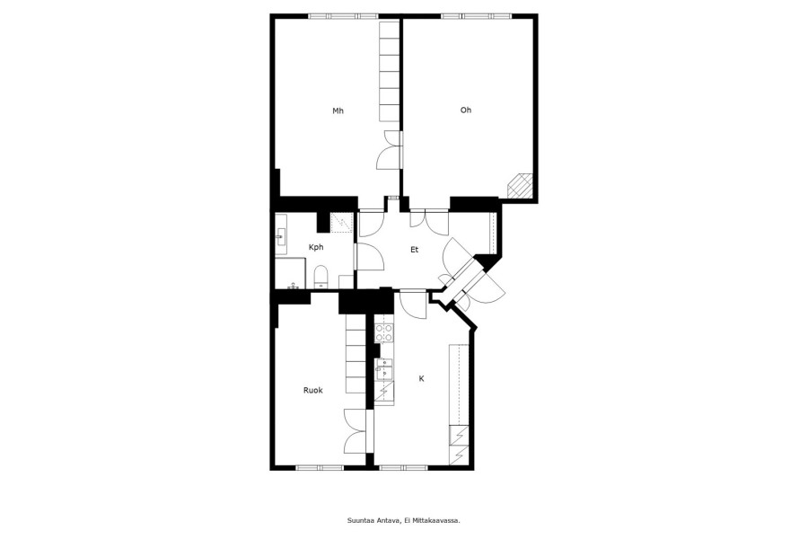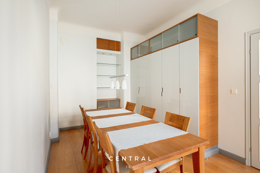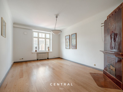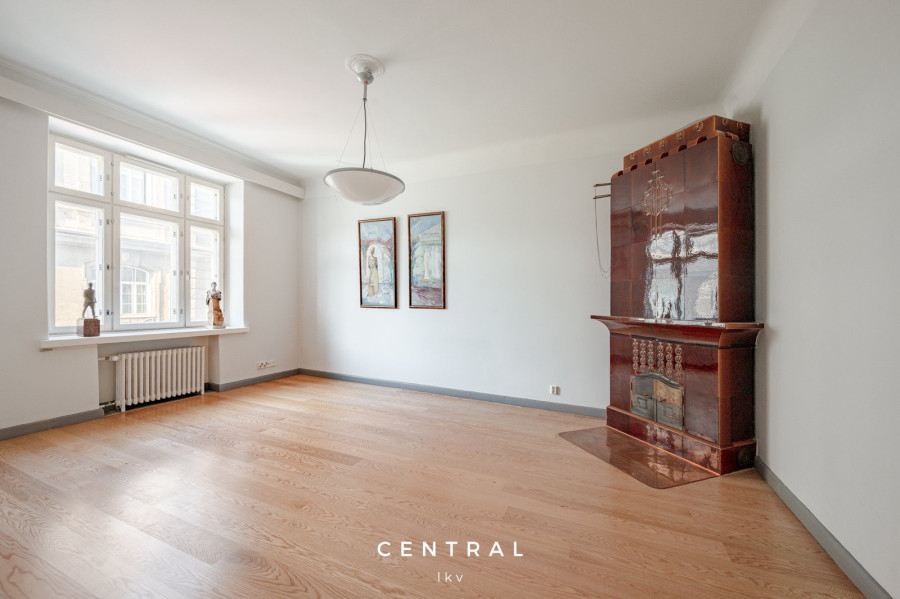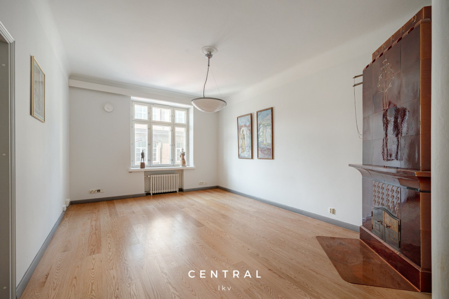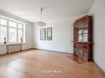 Asunnon tilavat ja korkeat huoneet luovat avaran ja valoisan tunnelman, ja olohuoneessa oleva kaunis kakluuni tunnelmaa syysiltoihin.